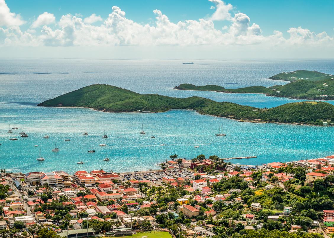 Charlotte Amalie, the capital of the United States Virgin Islands, is the most popular cruise port in the Caribbean. Charlotte Amalie (named for a Danish queen) is where cruise ships dock and the white and pastel houses are heavily sprinkled against a background of emerald hills. Colorful sloops dock along the waterfront, and a few steps back, down alleyways lined with old Danish warehouse buildings, is a world-famous shopping center.
