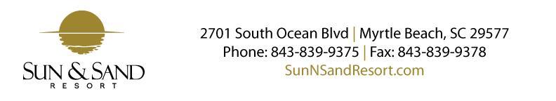 On behalf of the Staff and Management of Sun N Sand Resort, we would like to welcome you and to sincerely thank you for choosing us to serve your lodging needs. We value your patronage and it is very important to us that your stay will be a comfortable and enjoyable one. We take great pride in providing our guests with the utmost in professional and personalized service.