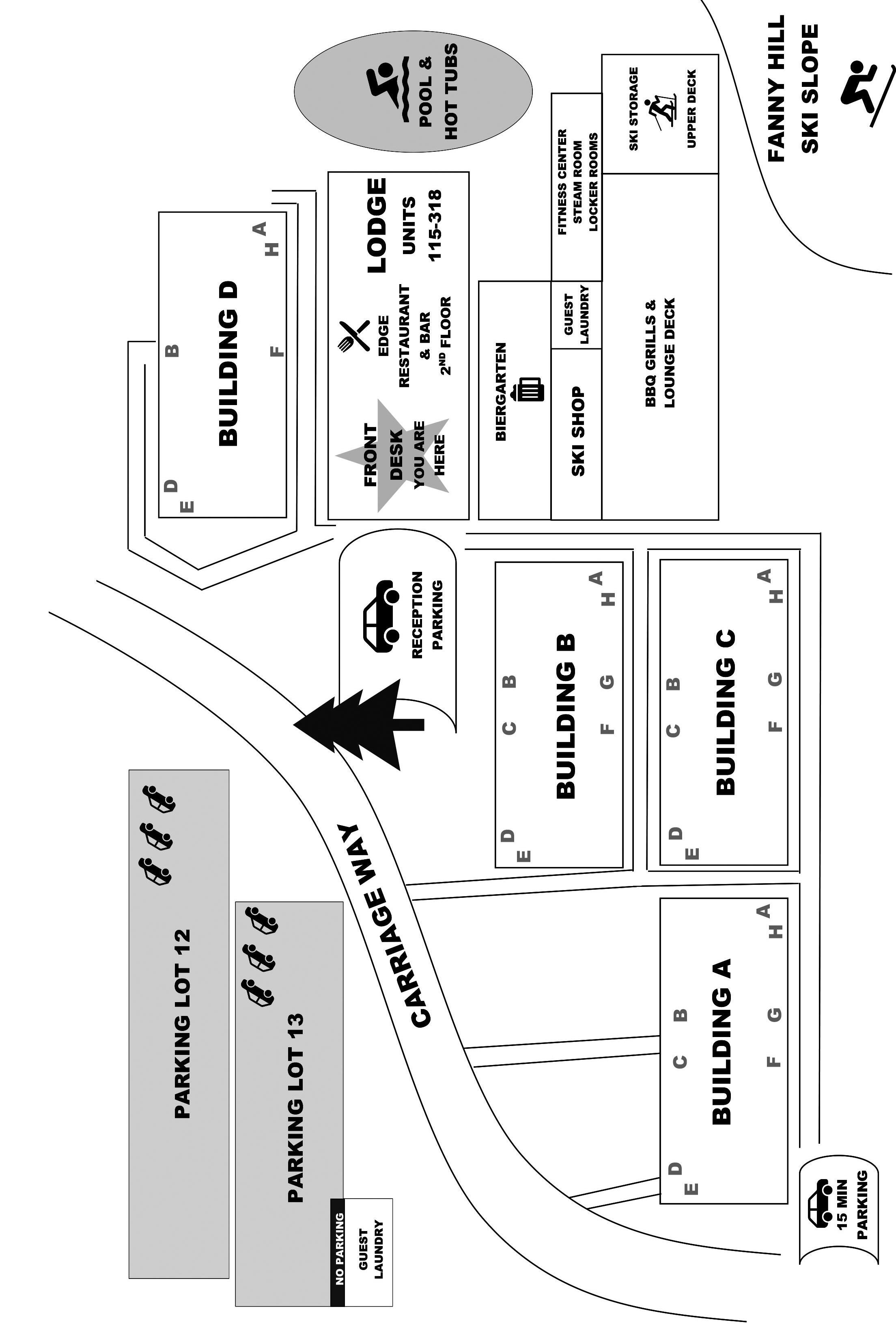Ski/snowboard lockups are conveniently located on the sundeck, above the pool, and at various locations around the property. These lockups are complimentary; however, there is a fee for lost keys.