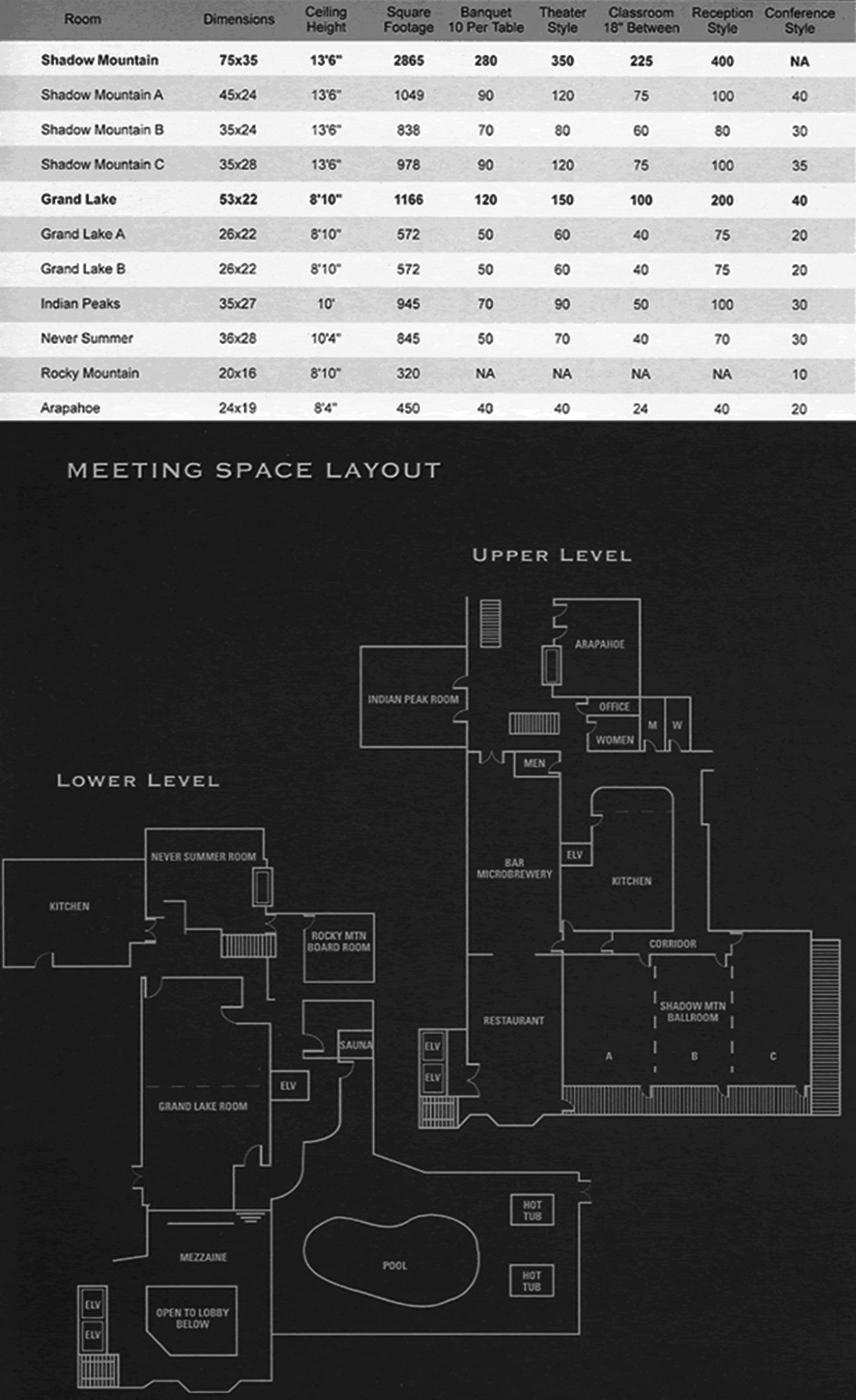 Winter Park Hotel features over 8,000 sq. ft. of flexible meeting space ranging from the Mountain View Ballroom with a capacity of 220 guests, to a Boardroom for 10 guests. Please call the Front Desk for our Sales Managers information.