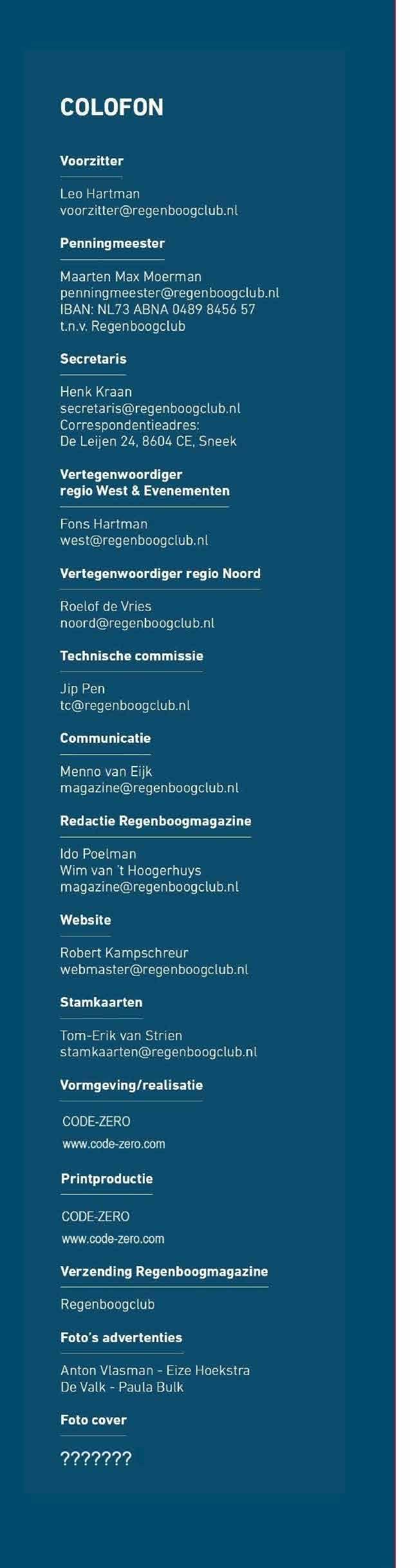 TEAM REGENBOOGMAGAZINE IDO POELMAN & WIM VAN ’T HOOGERHUYS (REDACTIE), ROBERT KAMPSCHREUR (VERZENDING) & LAURENS VAN STORMBROEK (CODE I ZERO - VORMGEVING)