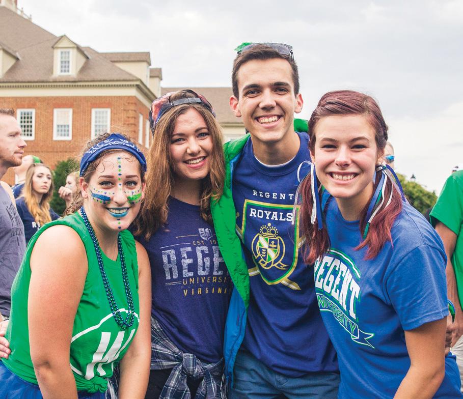 Regent University’s Impact is published monthly by the university’s Office of Alumni Relations and Special Events, free of charge, for alumni and friends of the university. Regent University is certified by the State Council of Higher Education for Virginia to operate campuses within the Commonwealth of Virginia. Regent University is accredited by the Southern Association of Colleges and Schools Commission on Colleges to award associate, baccalaureate, master's, and doctorate degrees. Contact the Commission on Colleges at 1866 Southern Lane, Decatur, Georgia 30033-4097 or call 404.679.4500 for questions about the accreditation of Regent University. Regent University does not discriminate on the basis of race, color, sex, national or ethnic origin, disability or veteran status in admissions, or in the administration of educational policies, scholarships, loan programs, athletics or other University administered student programs. In addition, Regent does not discriminate based on religion, except as necessary to comply with Regent’s Standard of Personal Conduct and Statement of Christian Community and Mission. Questions or concerns regarding discrimination based on sex may be directed to the University’s Title IX Coordinator at T9Coordinator@regent. edu, or the US Department of Education’s Office of Civil Rights at OCR@ ed.gov. Opinions expressed in Impact are those of individuals and do not necessarily represent the views of Regent University’s board, faculty, administration or staff. Regent University accepts news submissions from readers but reserves the right to edit based upon clarity, length and content. The university may decline to print material at its discretion. ADV170349