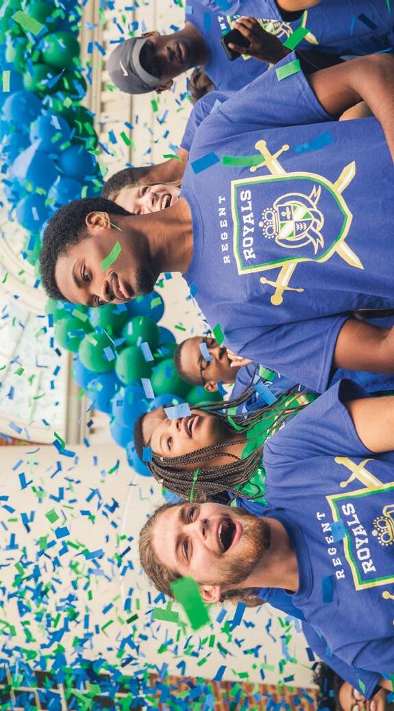 for the team to work through, but I believe that each obstacle will make Regent Cheer grow spiritually, mentally and athletically,” she explains. “I want each cheerleader to feel confident within themselves and as a team to walk out on the floor at all practices, games, competitions and events with a positive attitude, high energy and ability to give it their absolute best. That is true success!”