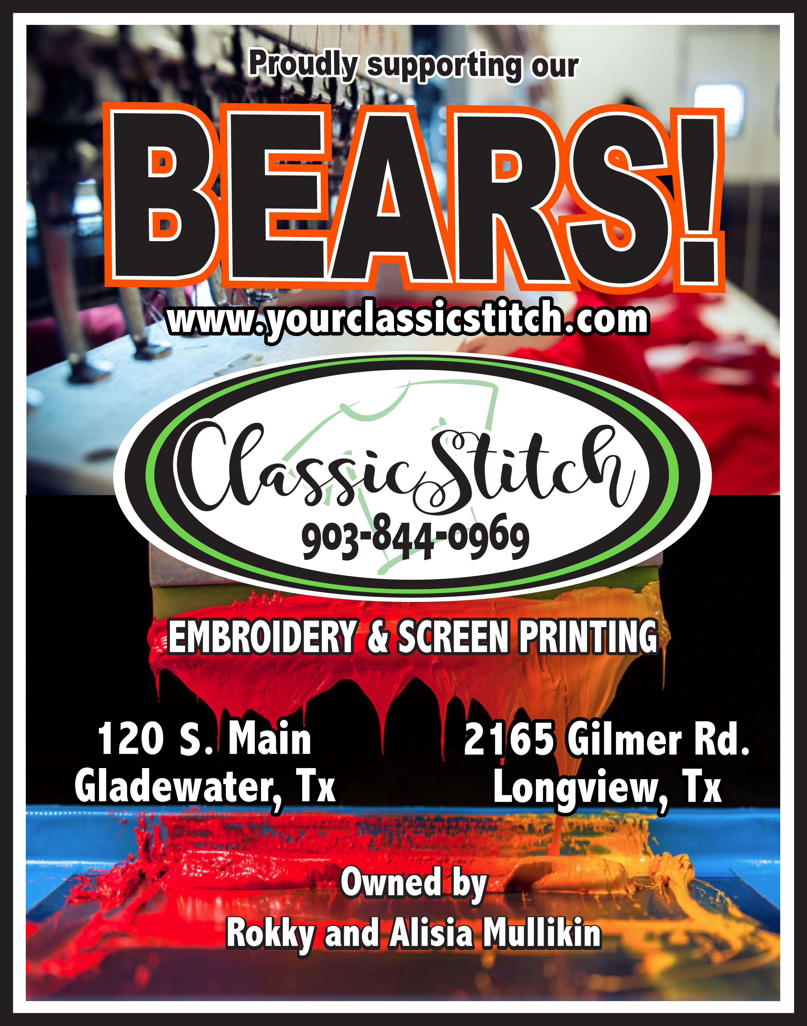 42 We proudly support the Gladewater Bears! 112 North Main Street • Gladewater, Texas 75647 gladewaterflowersandmore.net • gladewaterflowersandmore@gmail.com • (903) 845-5541 Gladewater Flowers & More
