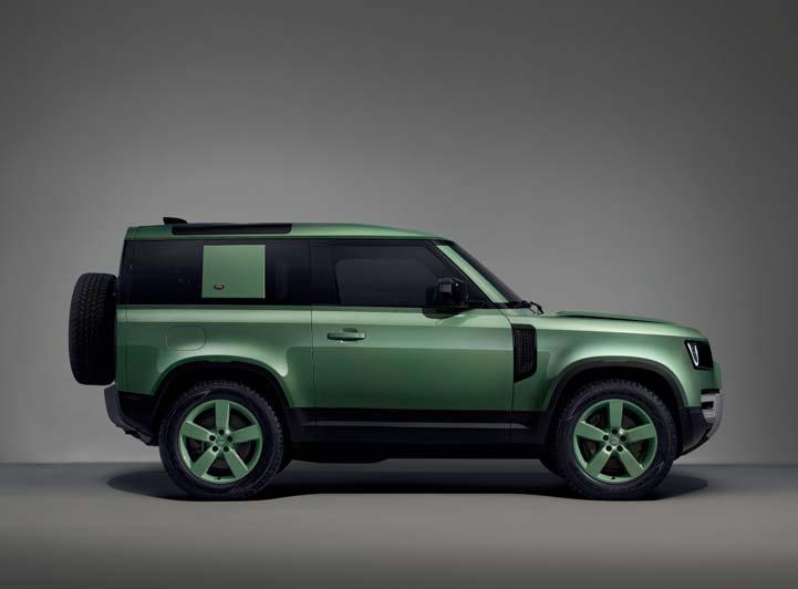 Availablein90or110bodystyles,the Defender75thLimitedEditionhasan exclusiveexteriordesignthemewith uniquedetailing,finishediniconic GrasmereGreenpaintwith complementingwheelsandinterior finishes.