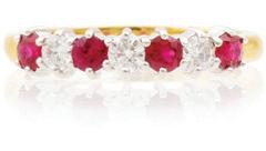 Ruby and diamond set, half eternity ring in 18ct gold, £1,650. H L Brown, 2 Barker’s Pool, Sheffield, S1 1LZ. Tel: 0114 272 4388. www.hl-brown.co.uk