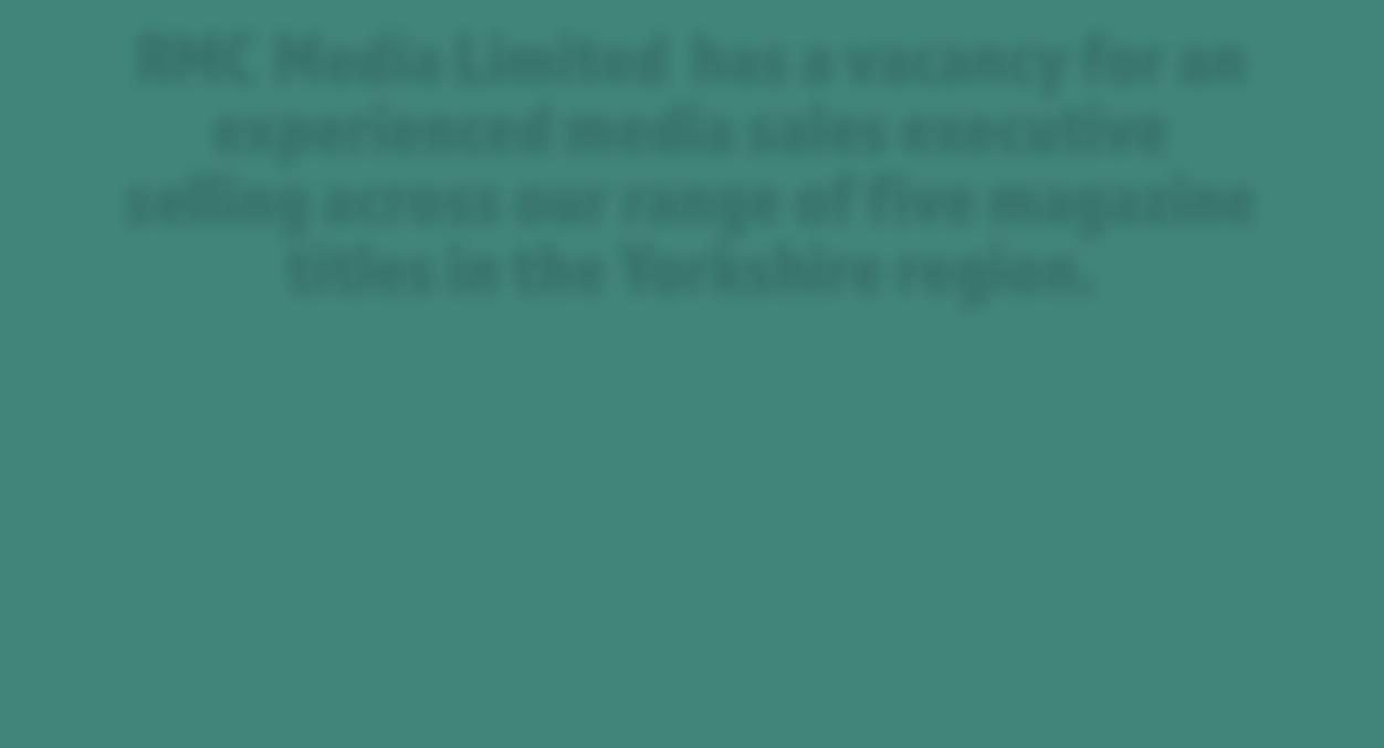 RMC Media Limited has a vacancy for an experienced media sales executive selling across our range of five magazine titles in the Yorkshire region.