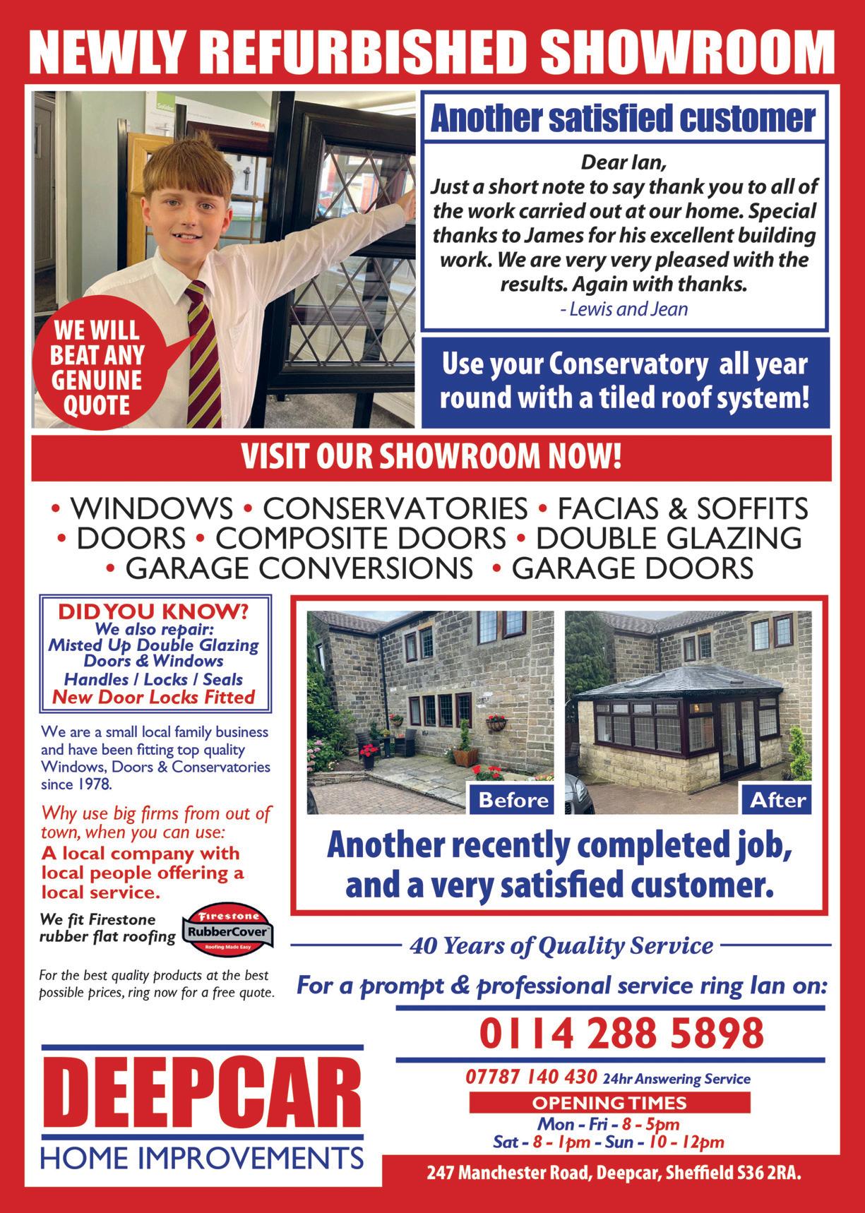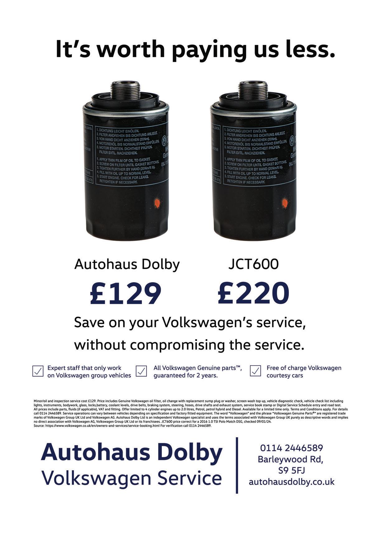 60 www.rmcmedia.co.uk Everything you’d get from a big name dealership. Except the price tag. SPECIALIST AUTOMOTIVE REPAIR FOR www.sheffi eldvwaudispecialist.co.uk UNIT 5, WILLIAM HOUSE, DANNEMORA DRIVE, SHEFFIELD S9 5DF 0114 275 4189 | 07841 910611 | TECNICKAUTOS@GMAIL.COM Dealer trained technicians State of the art equipment Free collection & delivery service Big savings on dealer prices Engine re-mapping Warranty compliant Engine diagnostics MOT centre Vehicle servicing Online digital servicing updates Clutch and gearbox repairs Brake service FIND US ON OUR STORY: Since our grand opening in 2023, Loxley Car Sales has provided our customers with quality vehicles and high end services to suit their needs. With a diverse assortment of vehicles in stock, we’re guaranteed to have something for everyone to enjoy. Loxley Car Sales also prides ourselves on offering the most reasonable prices in town, with options that fall within everyone’s budget. 115-119 Holme Lane. S6 4JR loxleycarsales@gmail.com 07747044332 VISIT OUR SHOWROOM Opening Hours: Mon - Fri: 9am - 5pm Sat: 10am - 4pm • Sun: Appointment only WE