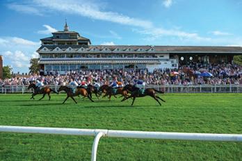 York Racecourse boasts a heritage that may stretch back to Roman spectacles around AD 208 and . Its elegant, wide, to form a complete circuit. The track provides a superb, fair surface the , part of which still survives today as part of the Champagne Terrace Guinness Bar. York’s signature is the annual four-day Ebor Festival in August, featuring three Group 1 races, the Juddmonte International Stakes, Yorkshire Oaks, and