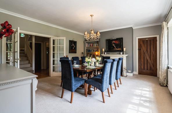 beautiful entrance hall, featuring an impressive dark-stained oak staircase and a focal point archway into the dining room. Three sizeable reception rooms offer wonderful settings for all of the family to relax, including a grand drawing room with oak mantels.