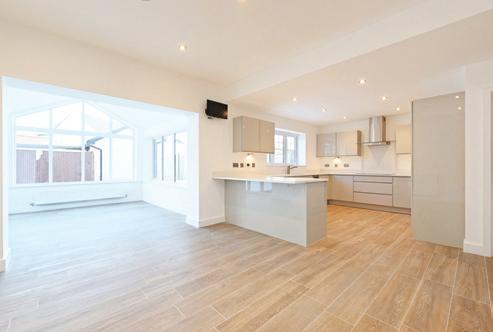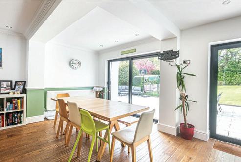 it to the open market. The property is set well back from the road and approached via a wide, ‘in and out’ driveway which provides off road parking for a number of vehicles. Due to the depth of the plot the rear extension has had very little impact on the size of the garden and allows for a generous sized rear garden which includes a spacious terrace area that opens onto a large lawn, ideal for energetic children and entertaining.