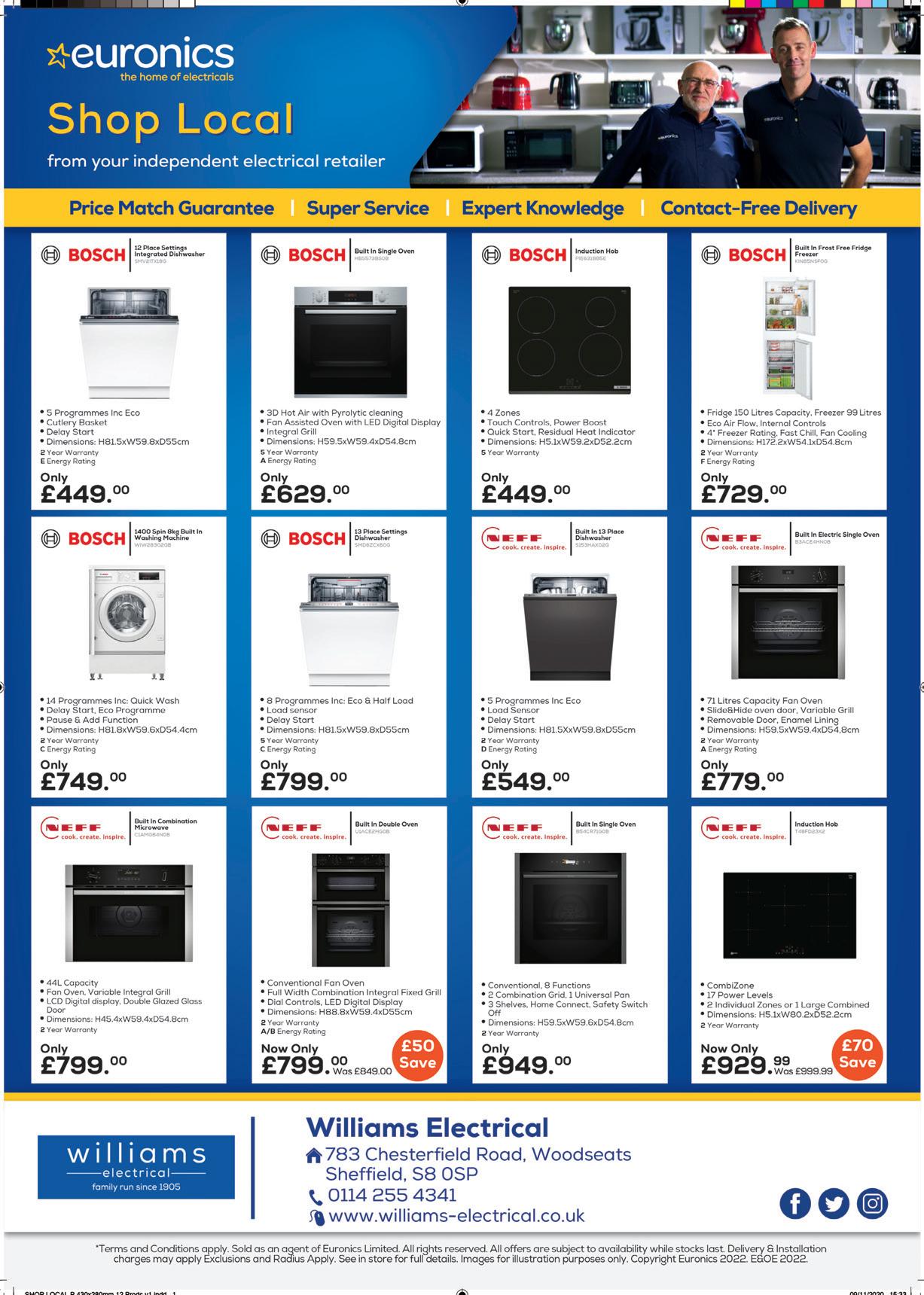 Williams Electrical is proudly independent but as part of Europe’s largest buying group, Euronics, has access to a huge range of top brand electricals at competitive prices, including those from, Sony, LG, Bosch, NEFF, Siemens, AEG,