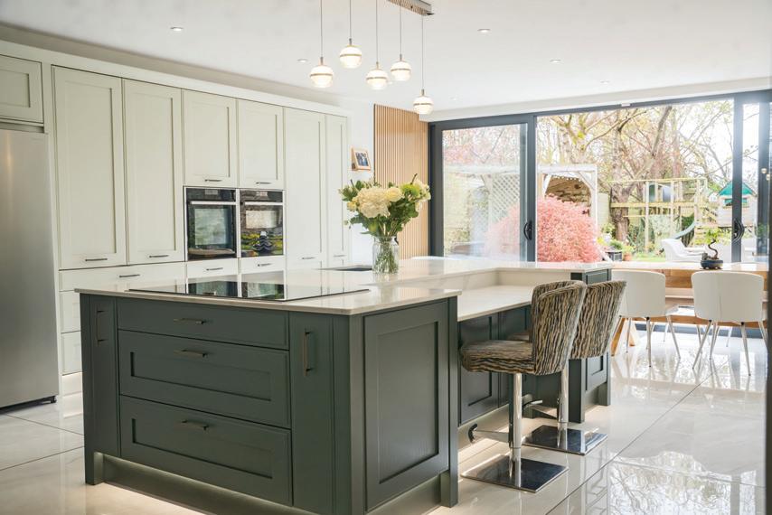The heart of the home is undoubtedly the open plan living kitchen, extended by the current owners to create a cohesive space for modern family living. A bespoke My Fathers Heart breakfast kitchen with a range of Siemens appliances sits to one side of the expansive room, and to the other is a bright living room overlooking the gardens.