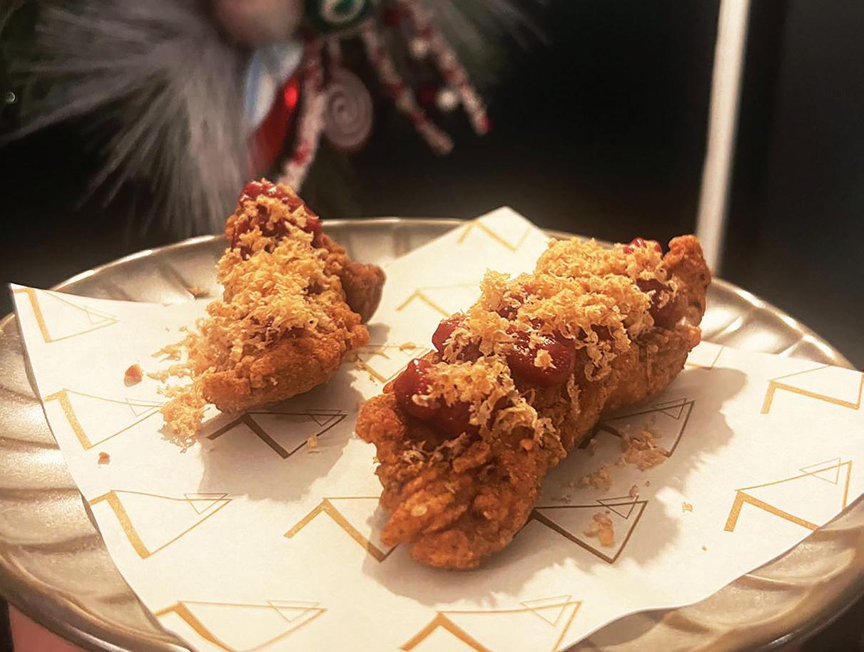 yet bright. The aromatic dredge, sweetsharp cranberry ketchup, and chestnut garnish together create a harmony of texture