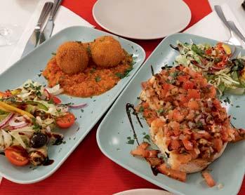 Weoptedtosharebruschetta(£6.50), anItalianclassicservedwithfresh tomato,redonion,garlicandextravirgin oliveoil;andaranciniriceballsfilled withsmokedham,mozzarellacheeseand parmesan(£8):Bothwereservedwith anaccompanimentofasidesalad.The starterswerebothfreshlyprepared,wellseasonedandsubstantialinsize.