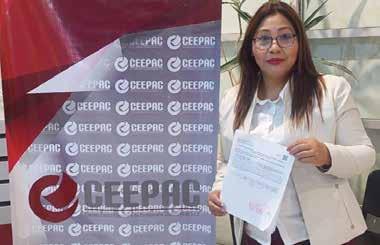 Acompañada de su equipo de trabajo y seguidores, Morales se dirigió a las instalaciones del Consejo Estatal Electoral y de Participación Ciudadana en este