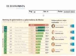 En el estudio correspondiente al mes de abril de 2024, Gallardo Cardona, obtuvo 8.9 puntos porcentuales más que el promedio de las y los Gobernadores que fue de 52.5 por ciento, además de que logró posicionar a San Luis Potosí entre las únicas dos entidades con calificación sobresaliente, a través de un porcentaje mayor del 60 por ciento de aval ciudadano.