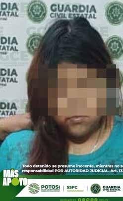 cuperada minutos después, mediante la reacción oportuna de la policía. Al presunto se le aseguró una dosis de “cristal”. Por último, en la colonia Tercera Grande, policías aseguraron una unidad tipo Vagoneta, marca Pontiac, modelo 1999, con placas de esta Entidad, la cual tenía reporte de robo de avenida de las Acacias, en el municipio de Soledad de Graciano Sánchez.