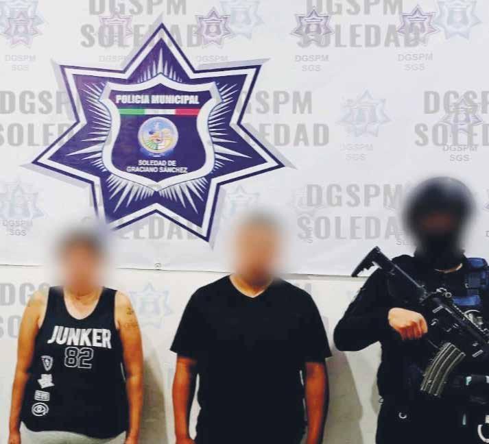 En trabajos preventivos, los policías de Soledad detuvieron a tres personas en la colonia Rancho La Libertad: un hombre por agresiones y daños, identificado como policía activo de San Luis Potosí, y una pareja por posesión de sustancias prohibidas.