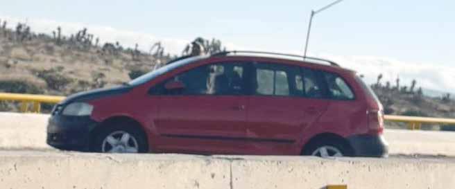 ZARAGOZA. - Una vagoneta compacta, un Volkswagen, de la línea Pointer, color vino, se impactó contra ls guarnición del puente del asentamiento humano, Ciudad Satélite, donde quedó varado, no hubo víctimas, solo os daños a la unidad y la interrupción del tránsito vehicular en ese tramo carretero, aunque a los demás conductores les quedó la vía alterna de la lateral de la carretera a Rioverde.