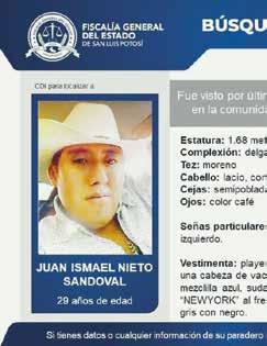 VILLA DE REYES. – Las autoridades y familiares buscan intensamente a Juan Ismael Nieto Sandoval., conocido como “El Chon”, un joven de 29 años que fue visto por última vez el pasado martes 17 de septiembre en la localidad de El Saucillo. Su desaparición ha generado preocupación en la comunidad, que se ha sumado a los esfuerzos de búsqueda. Es el segundo desaparecido en 15 días.