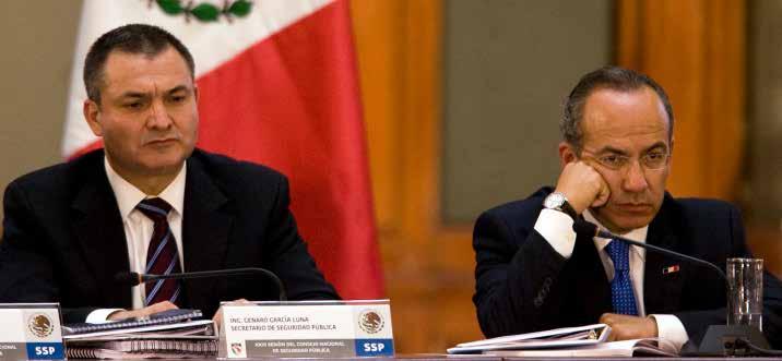 Genaro García Luna, ex Secretario de Seguridad Pública durante el gobierno de Felipe Calderón, fue condenado a más de 38 años de prisión en Nueva York por narcotráfico. La sentencia se dio a conocer el 16 de octubre de 2024, luego de que García Luna fuera declarado culpable en febrero de 2023 de varios delitos relacionados con el crimen organizado, incluyendo conspiraciones y declaraciones falsas. [Pág. 5]
