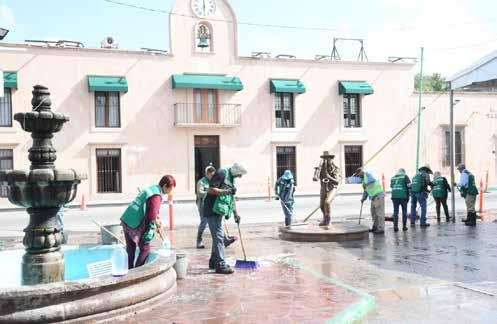 El Ayuntamiento de Soledad de Graciano Sánchez, a través de la Dirección de Servicios Municipales, llevó a cabo trabajos de limpieza y rehabilitación en la plaza principal, con el objetivo de mantener espacios dignos y seguros para las familias y visitantes. Estas acciones forman parte de la política mu-