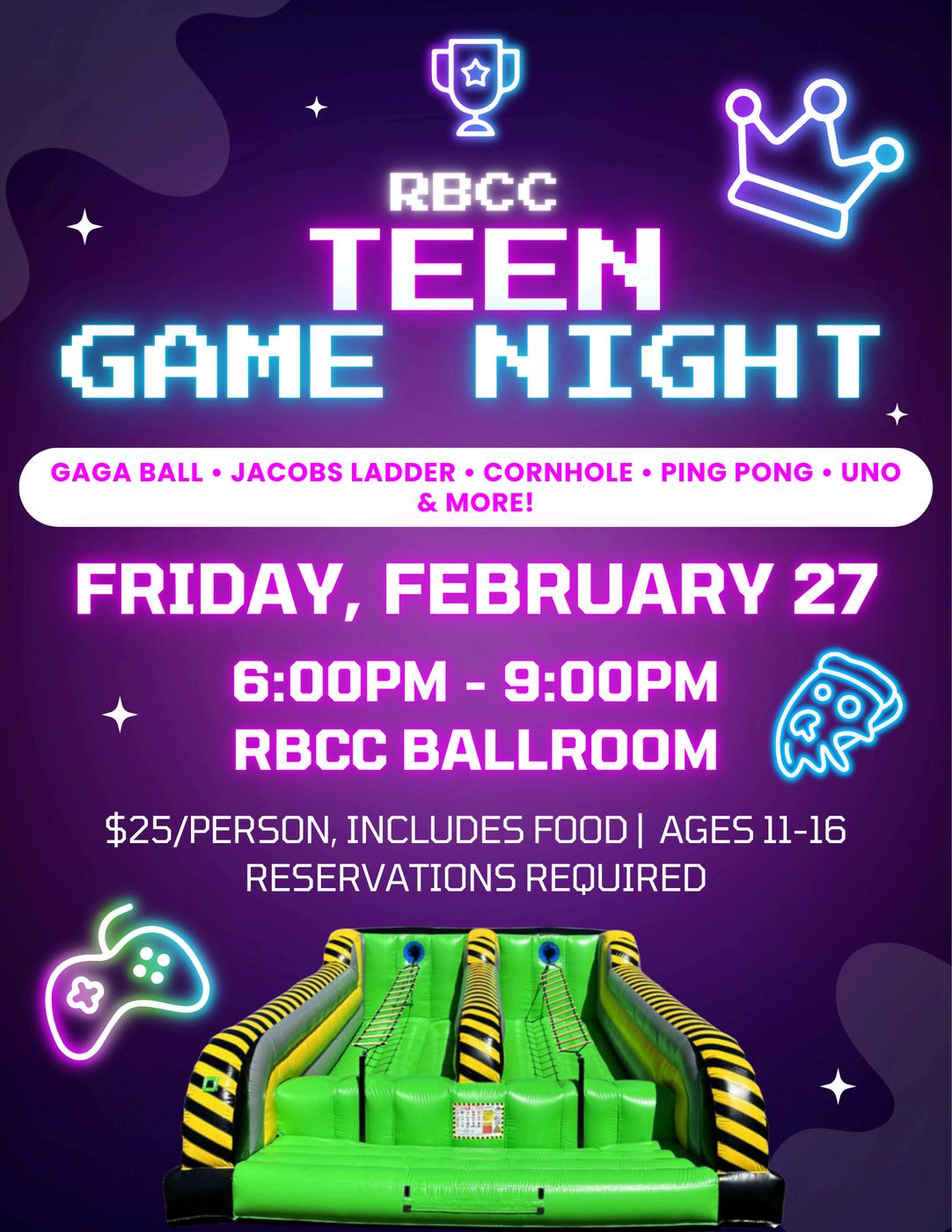 Kids club will be on Friday, February 20 from 6pm-9pm There will be games, arts & crafts, and of course, gaga ball. Kids Club is for ages 5-12 and all children must be completely independent in the bathroom. Price is $25 for the first child and $20 for the second child Food is included in the price Reservations are required.