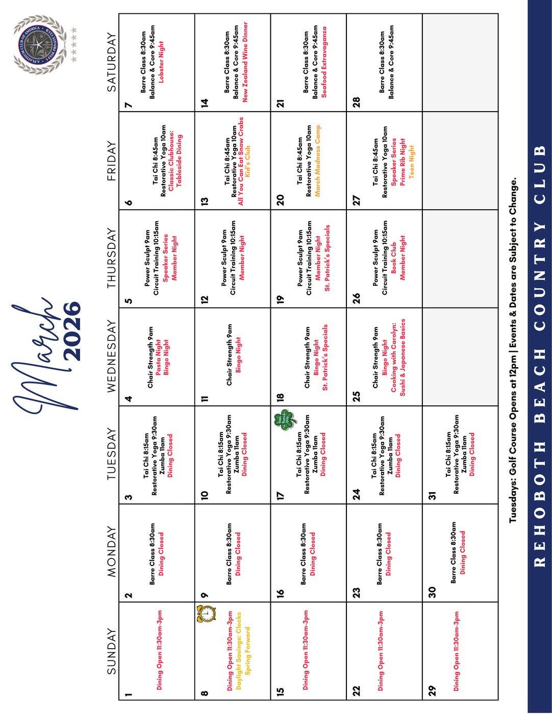 As a reminder, F&B Minimums run with the Club’s fiscal year ending March 31, 2026. Be sure to stop by the Club and attend a social event or have lunch, dinner, or take out with us!