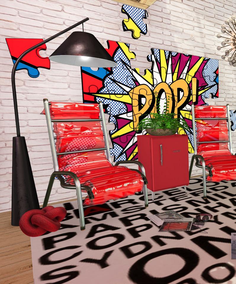 To make the This is Pop! build truly liveable, the secret lies in a strategic hunt through the Second Life marketplace and in-world events for “power-coloured” statement pieces. You’ll want to track down furniture and decor in saturated teals, cherry reds, and cadmium yellows that can hold their own against the architecture’s sharp geometry. However, a room draped entirely in neon can quickly become visually exhausting. To prevent “colour fatigue,” the trick is to anchor your vibrant finds with sophisticated neutrals. By blending a high-voltage purple sofa with a plush charcoal rug or setting a bright orange coffee table against a soft slate wall, you create a visual “resting place” for the eye. This balance ensures that your boldest items remain the stars of the show without turning your home into a sensory overload.