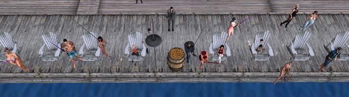Unlike RL fishing, Second Life’s version requires little talent. Bait-casting regular Jady agrees, explaining the number of skills required for SL fishing: “Not a damn one.” She laughs. “Unless you consider looking good while you fish.”
