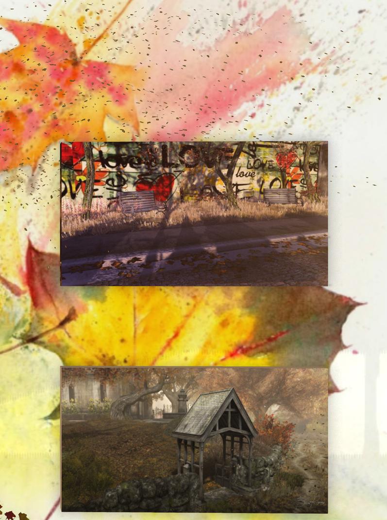 Missing Melody - “What is a Missing Melody? It’s that song in your head that you can’t get out but not sure how it really goes.” Missing Melody in the fall is a place you will want to visit over and over just to find all the beautiful sights and spots it has to offer. Find a seat in the gazebo, grab a coffee in the cafe, or just take your time wandering through the trees, taking in all that this sim has to offer.