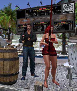 All of this and more await visitors to Second Life’s fishing holes: various ponds, lakes, and the ocean. Lorke and Lottie’s site, Fishbone, is one such place.