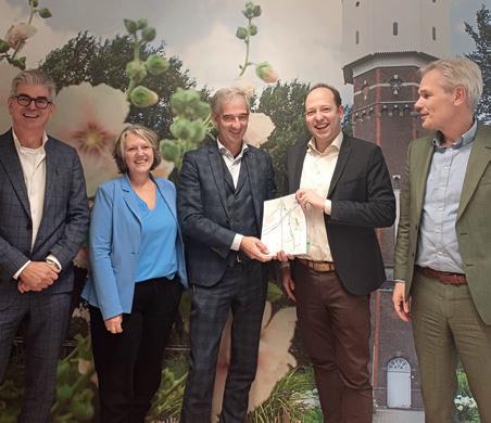 Gebiedsontwikkelaar AM, gemeente Vught en Reinier van Arkel tekenen de toetredingsakte waarmee AM partner is voor de ontwikkeling van het park. Meer informatie over de parkontwikkeling door AM lees je op www.woneninparkvoorburg.nl