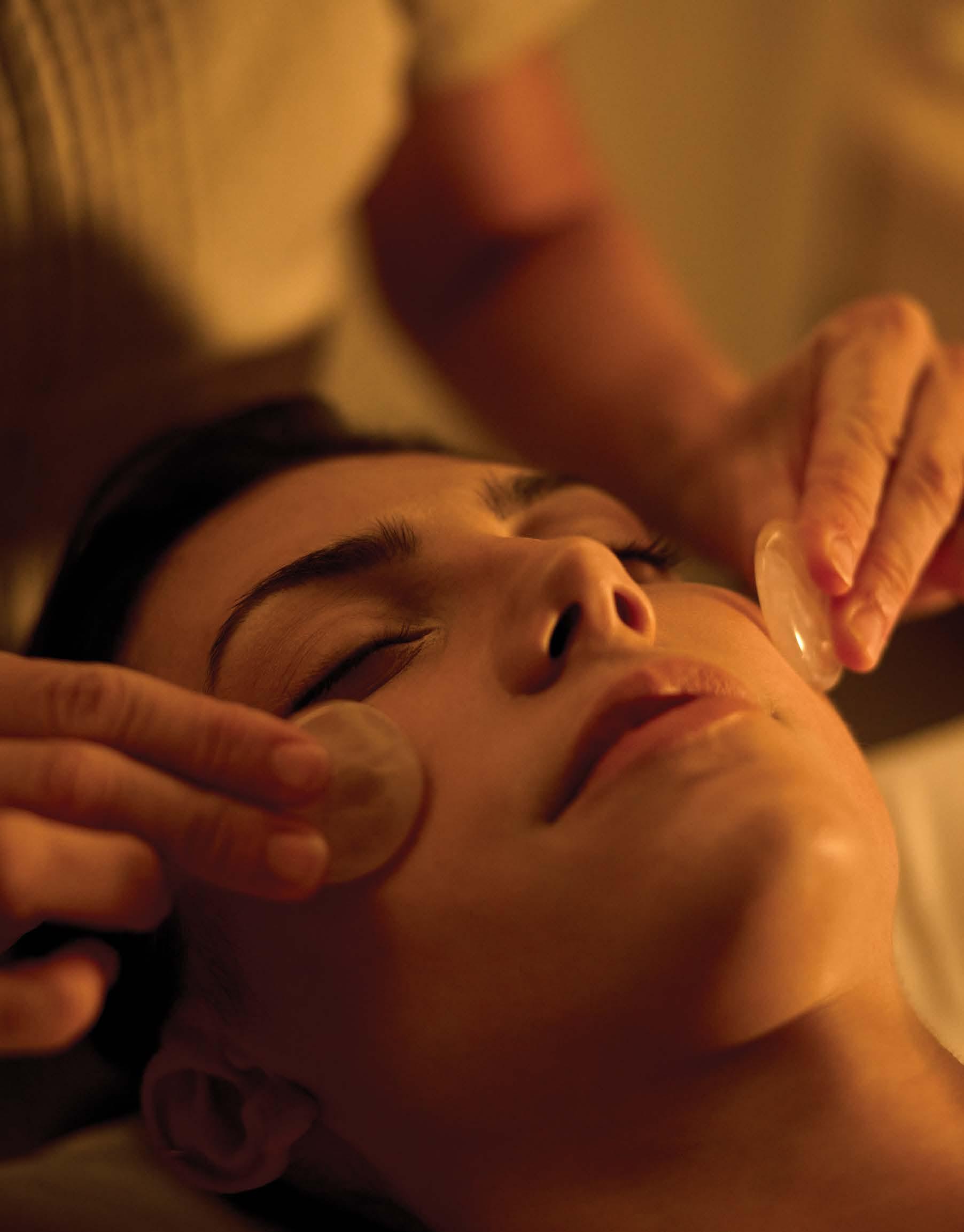 6,800-square-foot AWAY® Spa with dedicated suites for custom massage and wellness treatments, cold plunge, Jacuzzi, sauna and steam rooms, and nail services