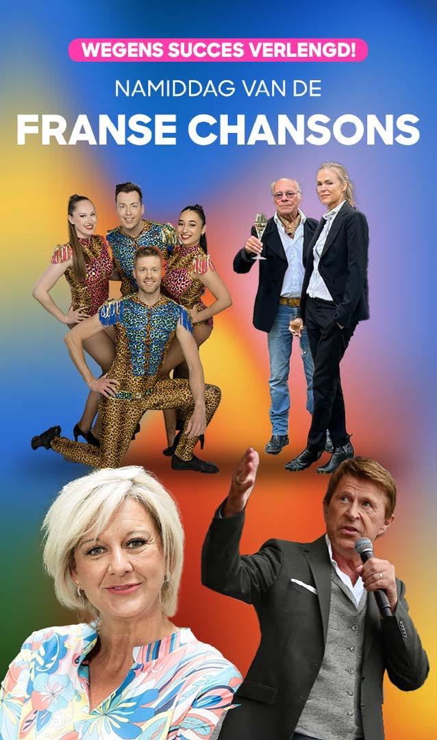 Vandaag genieten we van een onvergetelijke show en de lekkere Franse keuken. Na onze heerlijke Franse lunch, brengen Jo Vally, The Stardancers, Daisy Thijs en Ruuth & Chris hun grootste hits en beste acts. We eindigen de dag met lekkere broodjes.