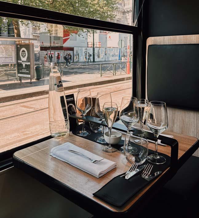 omgebouwd tot een stijlvol rijdend restaurant. Tijdens deze bijzondere rit worden we culinair verwend met een schitterend zesgangenmenu, inclusief aperitief, zorgvuldig geselecteerde wijnen en frisdranken. De gerechten worden aan boord bereid door een gerenommeerde sterrenchef, waardoor we niet alleen genieten van de smaken maar ook van de bijzondere setting. Terwijl de tram zachtjes door de stad rijdt, glijden de mooiste bezienswaardigheden van Brussel aan ons voorbij. Een absolute topervaring!
