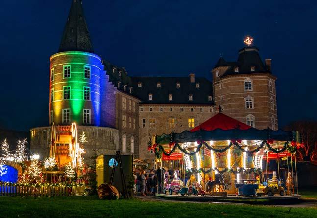 “Feuerzangenbowle”, een huisspecialiteit van gekruide warme wijn. Regelmatig verschijnt de kerstengel in de toren van het kasteel die een kerstboodschap brengt onder een regen van gouden sterren. Kortom, Schloss Merode is een must voor iedere liefhebber van kerstsfeer!