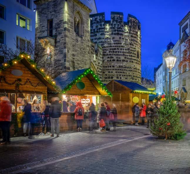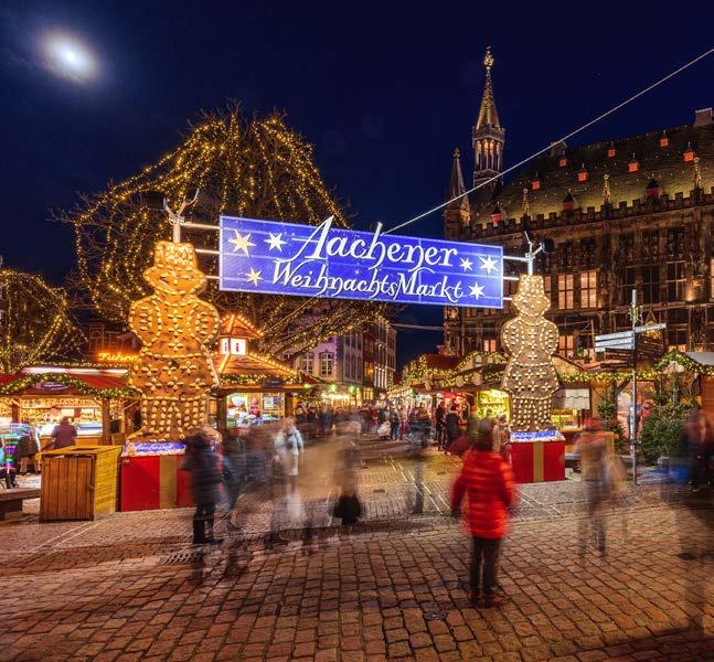 Namiddag: na ons heerlijk middagmaal rijden we naar Schloss Merode. Hier brengen we een bezoek aan de mooiste kerstmarkt van Noord-Rijnland-Westfalen. Beschermd door de imposante kasteelfaçade, worden de binnenplaats van het kasteel en het ruime park verlicht door talloze lampen, kaarsen, lantaarns en fakkels. Op een groot vuur met gloeiende houtskool maakt men iedere avond in een grote kookketel de beroemde