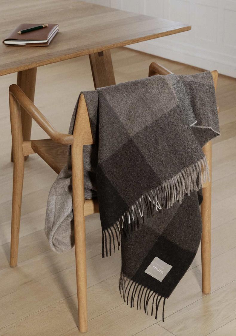 The collection called Ècru is designed by Danish Cecilie Manz and consists of three throws. They differ from each other both in the base colour and in the discreet stripes along the edges that vary in both weave and colour, giving each throw its own unique identity. The throws come in three classic basic colours - a soft beige, an off-white and a brown. All are the natural colours of baby alpaca wool, which means that the fibres are not dyed.