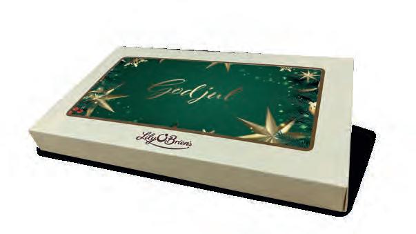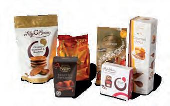108-380 LILY O´BRIENS MINI DESSERT KONFEKT 5 BITER 48 g dessert konfektsjokolade 45,108-390 LILY O´BRIENS CHOCOLATE COLLECTION 26 BITER 300 g konfektsjokolade. 245,108-400 LILY O´BRIENS DESSERT COLLECTION 24 BITER 312 g dessertsjokolader med smak av kjente desserter. 245,108-410 LILY O´BRIENS PETIT INDULI GENCE COLLECTION 39 BITER 402 g konfektsjokolade. 295,KONFEKT- OG SJOKOLADEPRODUKTER FRA LILY O’ BRIENS Alle priser er oppgitt eks mva. 19
