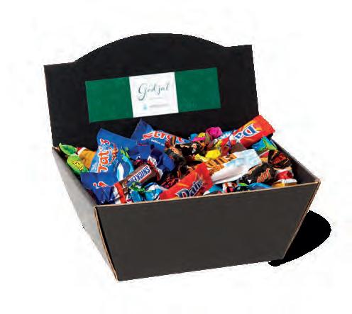 5 x 30 g i nett / Hamlet Chocolas sjokoladeflak 125 g / Tradisjonell juleskinke 100 g / Pesto Verde Fam. Labardi 130 g / Choco Twist 120 g / Forlasa tapasbrett 180 g / Olivenmix i pose 120 g / Julegløgg 0,33 l Tomtegløgg / Festpølse med aquavit 200 g / Balso balsamvinegar og soya 200 g / Holmsens brente mandler 100 g / Stratos stor plate 150 g.