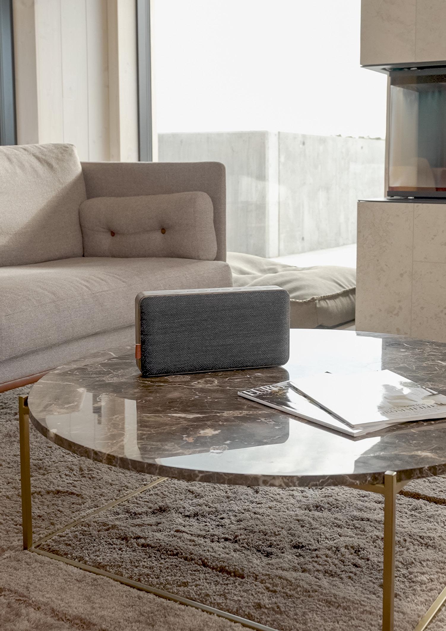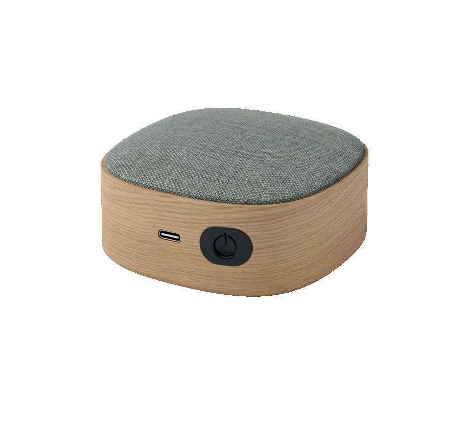Go Wood is a small, portable speaker disguised as an aesthetic accessory in your home. With an elegant wooden frame in oak wood and gorgeous textile from the Danish KVADRAT, Go Wood stands out from other speakers on the market. Go Wood gives you exceptional sound for its size category, as well as the ultimate freedom of never needing wires for charging or playback.
