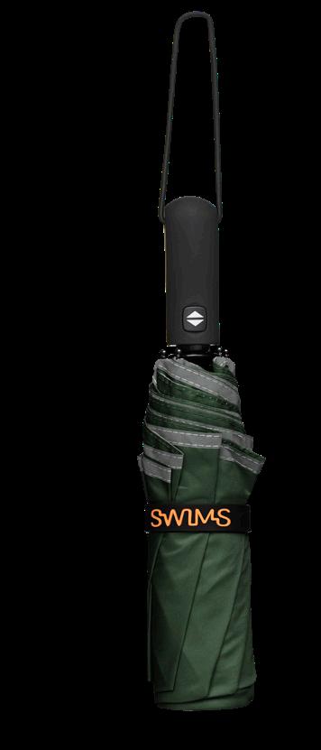 Med en praktisk størrelse som får plass i sekken eller vesken er denne paraplyen en must-have. Paraplyen har smart refleks rundt hele kanten, SWIMS-logo på stroppen, og den åpnes og lukkes ved å trykke på knappen på det ergonomiske håndtaket.