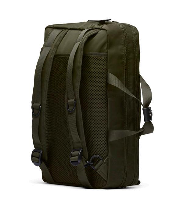Den allsidige Hybrid Bag kan bæres som ryggsekk, brukes som stresskoffert, eller som skulderveske. Den er laget av vannavstøtende luksusnylon med solide D-ringer, metallklips og skinnkanter. Det utvidbare interiøret har flere lommer, og selvfølgelig en egen lomme til din bærbare PC.