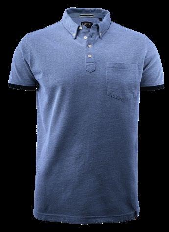 Piké med button down krage. Oxforddetalj i halshål, kontrastribb i ärmavslut. Bröstficka på herrmodellen.