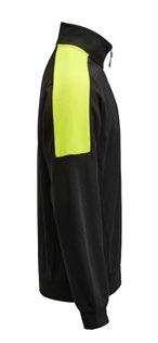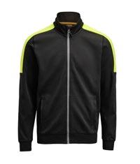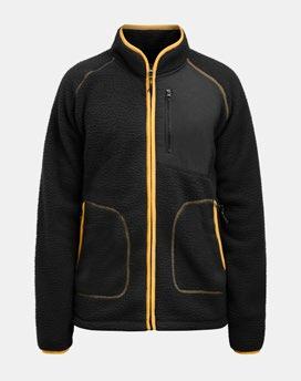 Pälsfiberjacka med partier av tyg vid armbågar och bröstficka. Blixtlåsförsedda fickor fram. Bröstfickan är lämplig plats för transfertryck. Elastiskt kantband i kontrastfärg fram, runt kragen och vid ärmavslut. Reglerbar i nederkant med dragsko.