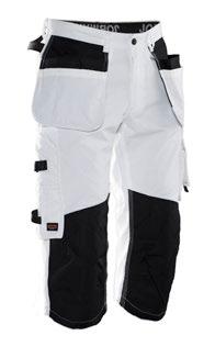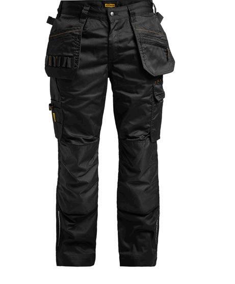 Smidig 4-vägs stretch i slitstarkt Rip-stop material. Rymliga hölsterfickor med extrafack och förstärkt insida som kan stoppas ned i framfickorna. Silikonband i byxlinningen håller byxan på plats. Grenkil med förstärkt stretch Cordura®. Delvis frihängande bakfickor gör att du lättare kommer åt innehållet. Extra hällor för bältet på de största storlekarna. Hammarhank. Tumstocksficka med knivhållare. Benficka med täckt blixtlås, ID-kortsfack och telefonfack. Förböjda knän med knäskyddsfickor i slitstark stretch Cordura® med 3M´s reflexpasspoaler och två höjdnivåer. Mesh i knävecken för ventilation. Förstärkt benslut i polyamid som inte absorberar fukt. Reflexpasspoal och dragsko i benslutet. Certifierad enligt EN 14404:2004+A1:2010 Typ 2 Nivå 1 tillsammans med Jobmans knäskydd 9943, 9944 och 9945.