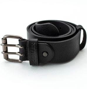 Bälte i läder, 36 mm brett. Kraftigt spänne med stålstift.
