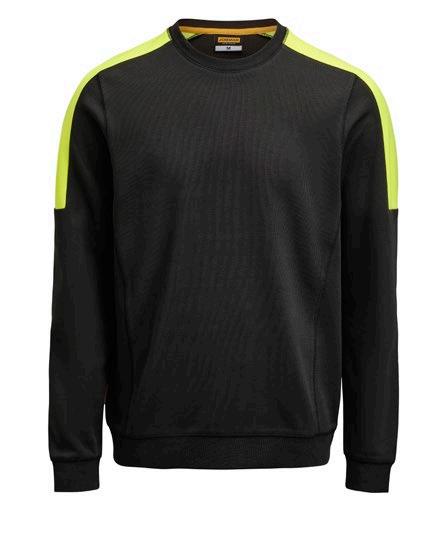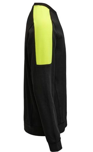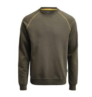 Sweatshirt med raglanärm. Borstad insida ger en skön komfort. Orange kantband på insidan av halshålet. Orange flatlocksömmar i raglan (endast färg 7600 Olivgrön). Dekorativt tygmärke på höger ärm (endast färg 7600 Olivgrön). Certifierad enligt Oeko-tex.